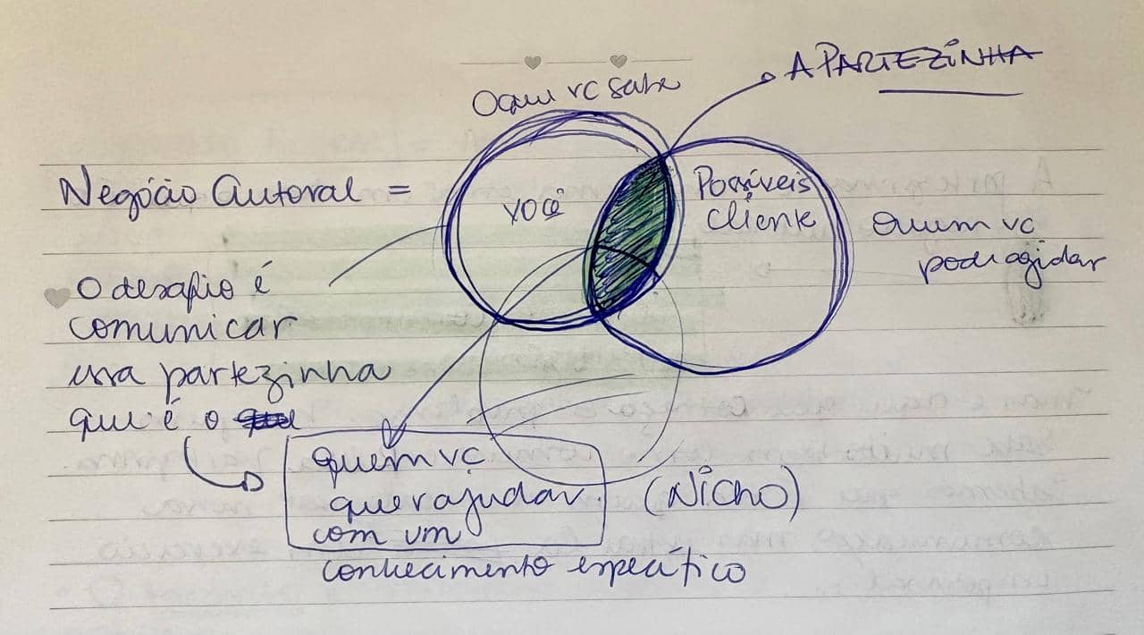 Rasuras e letras ilegíveis à parte, aqui eu estava tentando mostrar para mim mesma o que era importante comunicar quando temos um negócio autoral. E ficou evidente que a resposta é: a partezinha.