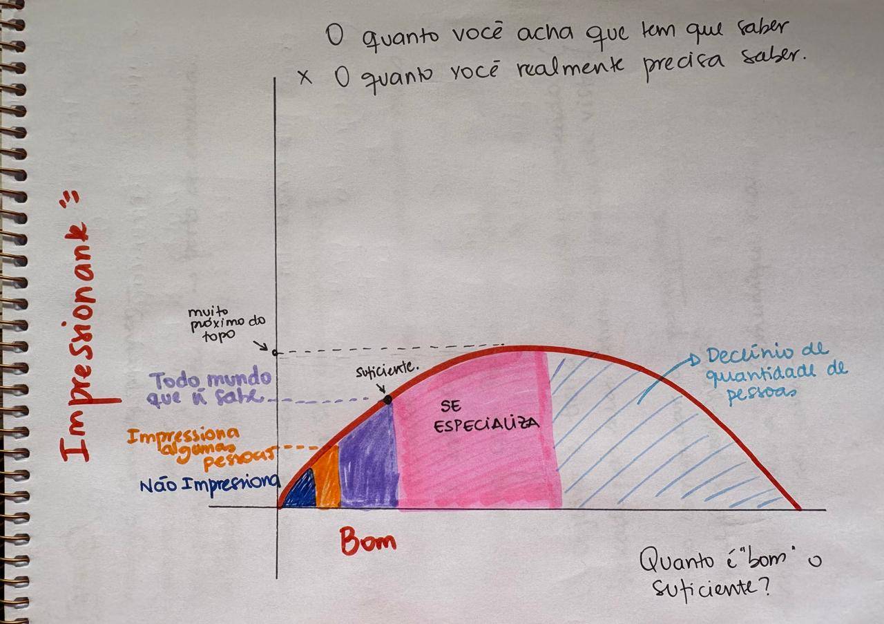 Além de me fazer refletir sobre a minha relação com a guitarra, essa curva me fez refletir sobre a nossa relação com o marketing. Tanto no que a gente se apega na hora de fazer marketing quanto no que decide aprender para impressionar as pessoas de que estamos fazendo um marketing muito profissional, top, espetacular, 6 em 7.